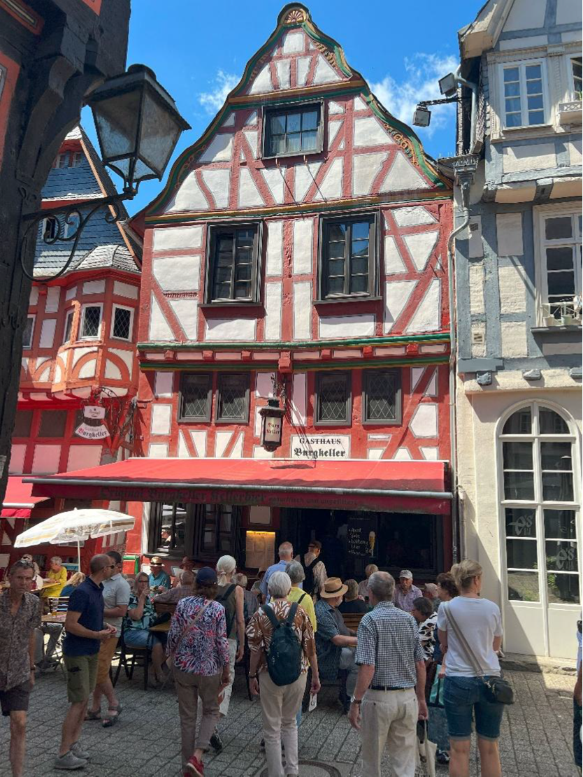 Nach einem gemeinsamen Mittagessen im historischen „Burgkeller” unterhalb des Doms, der von dicken Eichenbalken gestützt wird, erkundeten die Teilnehmer der Exkursion am Nachmittag in kleinen Gruppen die beeindruckende Limburger Altstadt um den Dom.