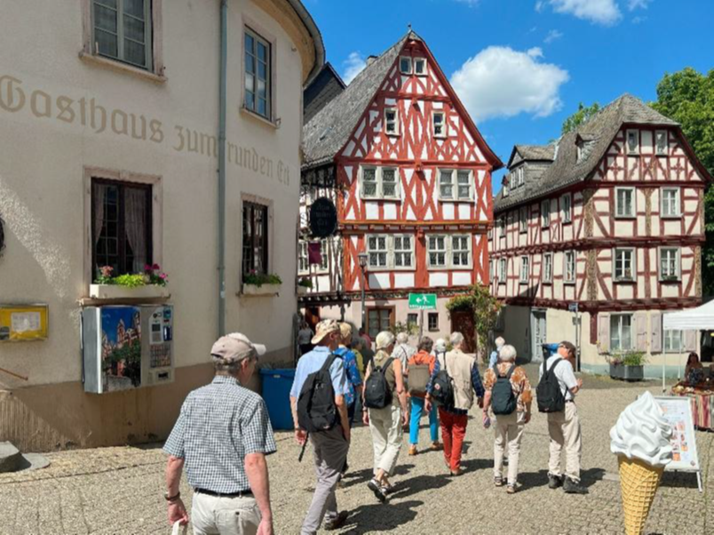 Vier Tage waren Mitglieder des Geschichtsvereins Usingen, des Fördervereins Kreisarchiv des Hochtaunuskreises und unseres Vereins zu Residenzstädten der Grafen und Fürsten von Nassau unterwegs. Das Geschlecht der Nassauer spaltete sich immer wieder in neue Linien auf. Dabei entstand nicht nur die Residenzstadt Usingen, sondern beispielsweise auch Residenzen in Ottweiler, Saarbrücken und Kirchheimbolanden. Auf dem Weg ins Saarland am Donnerstag besichtigte die Reisegruppe zuerst Göllheim, wo der einzige deutsche Nassauer König, Adolf von Nassau, 1298 in einer Schlacht starb. Das lokale, liebevoll gestaltete Museum im Uhl‘schen Haus rundete den Besuch in Göllheim ab. Nach dem Mittagessen ging es weiter zur Residenzstadt Ottweiler, wo wir eine sehr professionelle Stadtführung genießen konnten. Leider ist auch vom Ottweiler Schloss nichts mehr erhalten, aber die Altstadt lohnt allemal einen Besuch. Schließlich erreichten wir Saarbrücken, wo wir uns einquartiert hatten.