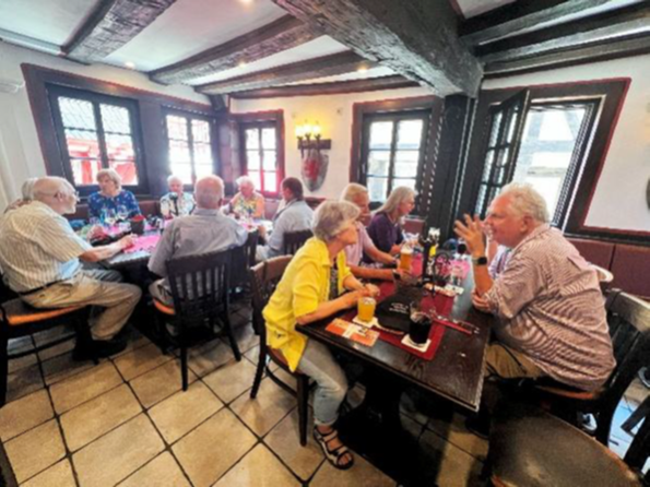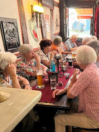 Zum Abschluss des dichten Programms der Busexkursion, die diesmal bei sehr heißen Temperaturen stattfand, genehmigten sich viele Teilnehmer in einer der zahlreichen Eisdielen oder Cafés noch einen leckeren Eisbecher, bevor es mit dem Bus wieder nach Bad Homburg und Oberstedten ging. Vorstandsmitglied Andreas Mengel, der die Fahrt gemeinsam mit Horst Eufinger organisiert hatte, hatte ein Papier mit einem Überblick über die Geschichte von Dietkirchen und Limburg erstellt, das auf der Rückfahrt gerne gelesen wurde.