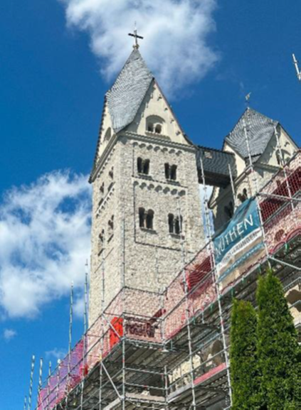 Während die äußeren Natursteinmauern in Dietkirchen unverputzt erhalten bleiben und momentan aufwändig neu verfugt werden, wird der Verputz des Limburger Doms momentan ebenfalls außen renoviert. Jedoch muss die Außenrenovierung des Putzes am Dom alle 50 Jahre wiederholt werden, während die Natursteinmauern der Dietkirchener St. Lubentius-Basilika nach der Restaurierung wieder mindestens 400 Jahre lang halten sollen.